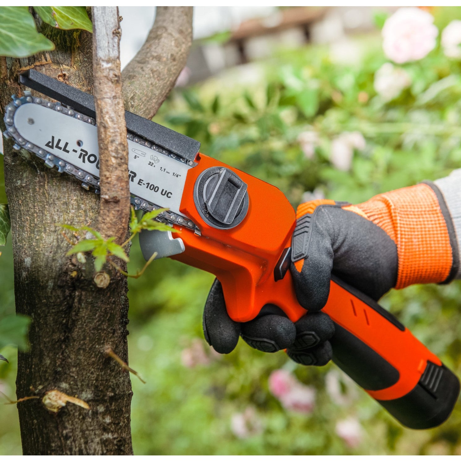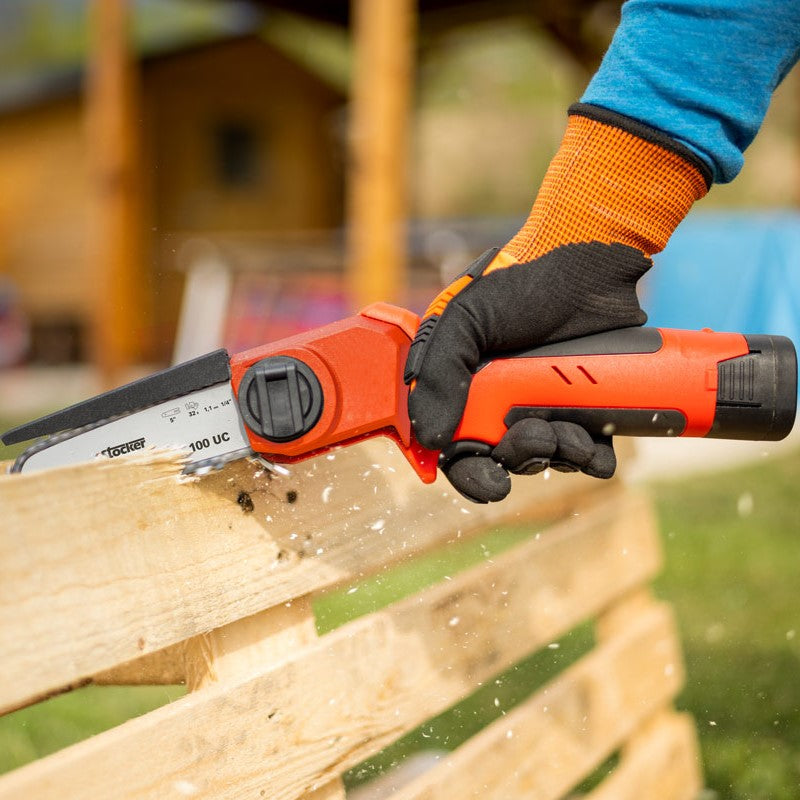 Motosega Troncarami ALL-ROUNDER E-100 UC a Batteria con Tensionamento Automatico della Catena Stocker